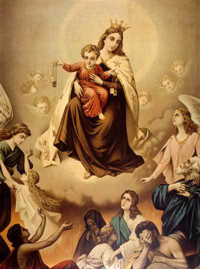 ORACIÓN. ¡Oh! Virgen del Carmen, María Santísima, que extendiendo tu amor hacia los Carmelitas, aún después de la muerte, como piadosísima Madre de los que visten tu santo escapulario consuelas sus almas, cuando están en el Purgatorio, y con tus ruegos consigues salgan cuanto antes de aquellas penas, para ir a gozar de Dios, nuestro Señor, en la gloria. Te ruego, Señora, me alcances de su divina Majestad cumpla yo con las obligaciones de cristiano y la devoción del santo escapulario, de modo que logre este singularísimo favor. Así, Señora, te lo suplico humildemente, diciendo: Dios te Salve, Reina y Madre de misericordia, etc.