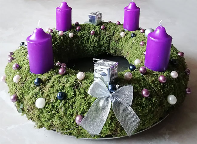 El morado y el rosa son los dos colores litúrgicos designados para representar el tiempo de Adviento. Aparecen en las vestiduras de los sacerdotes, en los velos del tabernáculo, en la parte frontal del altar y en la corona de Adviento.