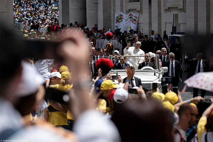 «El Padre que nos ha creado, Jesús que nos ha salvado y el Espíritu Santo que nos acompaña en la vida», resumió el Papa Francisco para explicar a 50 mil niños el misterio de la trinidad