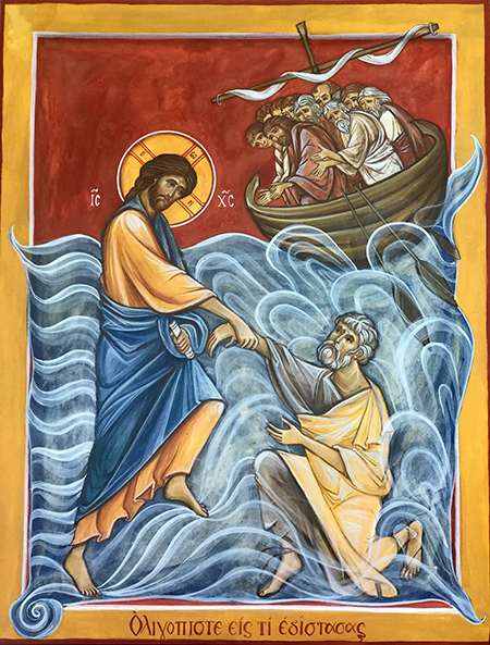 Reconstruido internamente, Jesús sale al encuentro de los discípulos, que no se encuentran tampoco en la mejor situación: en la barca, rumbo a la otra orilla, tal y como Jesús les había pedido, los vientos eran contrarios… reconocer la presencia del Maestro en circunstancias adversas es difícil… normalmente le queremos encontrar como “normalmente” ya le hemos encontrado… es normal confundirle con un fantasma… La situación da miedo… y aunque queremos y deseamos profundamente arriesgar la vida por ponernos cerca de Jesús, a veces la fe se nos revela pequeña y frágil, sentimos que nos hundimos, clamamos: “Señor, sálvame”.