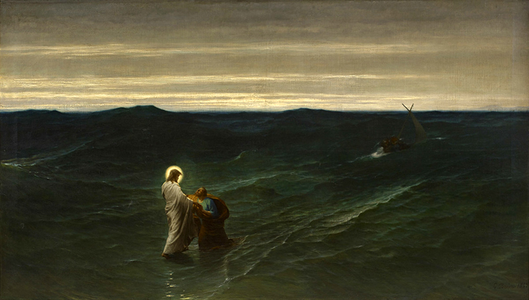 Entonces le dijo Pedro: “Señor, si eres tú, mándame ir a ti caminando sobre el agua”. Jesús le contestó: “Ven”. Pedro bajó de la barca y comenzó a caminar sobre el agua hacia Jesús; pero al sentir la fuerza del viento, le entró miedo, comenzó a hundirse y gritó: “¡Sálvame, Señor!” Inmediatamente Jesús le tendió la mano, lo sostuvo y le dijo: “Hombre de poca fe, ¿por qué dudaste?”.