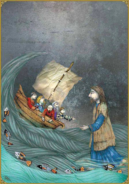 Entre tanto, la barca iba ya muy lejos de la costa y las olas la sacudían, porque el viento era contrario. A la madrugada, Jesús fue hacia ellos, caminando sobre el agua. Los discípulos, al verlo andar sobre el agua, se espantaron y decían: “¡Es un fantasma!” Y daban gritos de terror. Pero Jesús les dijo enseguida: “Tranquilícense y no teman. Soy yo”.