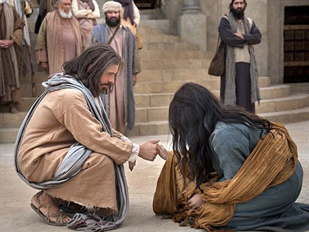 Al poner a la mujer frente a Jesús, lo primero que Él observa no es a una pecadora que lo ha ofendido sino a una hija amada cuyo nombre tiene bien grabado en su corazón. Jesús siente mucha compasión al verla encontrándose en un estado de miseria, engañada por el pecado y desvalorizada por los hombres. Jesús no puede sino conmoverse y desear limpiar en esta hija suya todo lo que se había ensuciado.