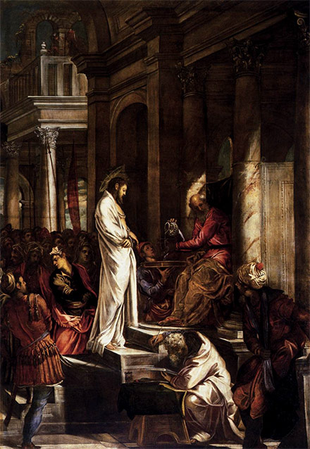 El sumo sacerdote interrogó a Jesús acerca de sus discípulos y de su doctrina. Jesús le contestó: «Yo he hablado abiertamente al mundo y he enseñado continuamente en la sinagoga y en el templo, donde se reúnen todos los judíos, y no he dicho nada a escondidas. ¿Por qué me interrogas a mí? Interroga a los que me han oído, sobre lo que les he hablado. Ellos saben lo que he dicho».
