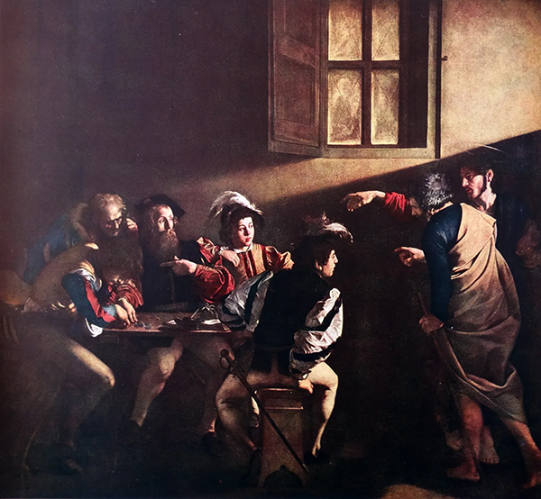 Su vocación puede llegar en el momento menos pensado. Mateo está sentado ante su mesa, donde recibe el pago de los impuestos. Aparentemente no piensa sino en cumplir bien su oficio y en sacarle jugo. No pudo prever el paso inesperado de Cristo que iba a cambiar su vida.