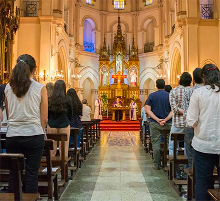 ¿Qué es le Misa? La Misa es el reflejo aquí debajo de esta gran Liturgia Celestial. Así que lo que Juan ve en su visión, ve a todas las Criaturas Celestiales vivientes y todas reunidas en Alabanza a Dios. La Misa aquí abajo es la anticipación de ese colocarnos nuestras naturalezas un poco débiles en línea con la gran Alabanza de la Corte Celestial. Y decimos algo como esto ¨Santo, Santo en la Misa, decimos algo como esto ¨unamos nuestras voces que están alabando a Dios. Sabemos que aquí abajo son diminutas, pero que se mezclen y armonicen con las suyas en el Cielo, para que la alabanza se convierta en el modelo de la alabanza aquí y que por tanto brote la Paz, aquí como existe allá. ¿Tiene sentido? Gloria a Dios en las alturas y Paz a los hombres que ama el Señor. Hay cantos religiosos que no van en sentido teológico correcto, tienen que ver con la teología eucarística, por ejemplo -el pan que eres tú- eso nos es teología católica. Porque la teología católica dice que el pan nos es más que pan. Ese Pan ha sido tocado por Dios, transubstanciado. Y lo que no sabe bien cuando se refiere a la comunidad, cuando dicen -Reunámonos- no es en la oscuridad de los límites del templo, no en cierto cielo a años luz de distancia, sino aquí en este lugar y ahora mismo que la luz está brillando, eso está totalmente mal. Primero el Cielo no está a años luz, como si estuviera a una distancia espacial, como más allá de la galaxia o algo así, esa no es la forma correcta de pensarlo. Pero lo más importante es que la Misa trata sobre el Cielo, es sobre el Cielo y como les decía ayer, el Cielo es nuestra conexión aquí abajo  con el Reino Celestial, no ponemos al Cielo entre paréntesis como si estuviéramos aquí desarrollando nuestra Comunidad no va a ser bien armada apropiadamente a menos que esté conectada a la Comunidad que alaba en el Cielo, es la conexión de estas dos lo que se revela en esa lectura del Apocalipsis – Revelatio, que es lo que está siendo revelado aquí es la adoración de XTO. RESUCITADO, que produce Paz en el Cielo y Paz en la Tierra. Adoremos a Jesús Resucitado en lustros corazones y en su Comunidad.