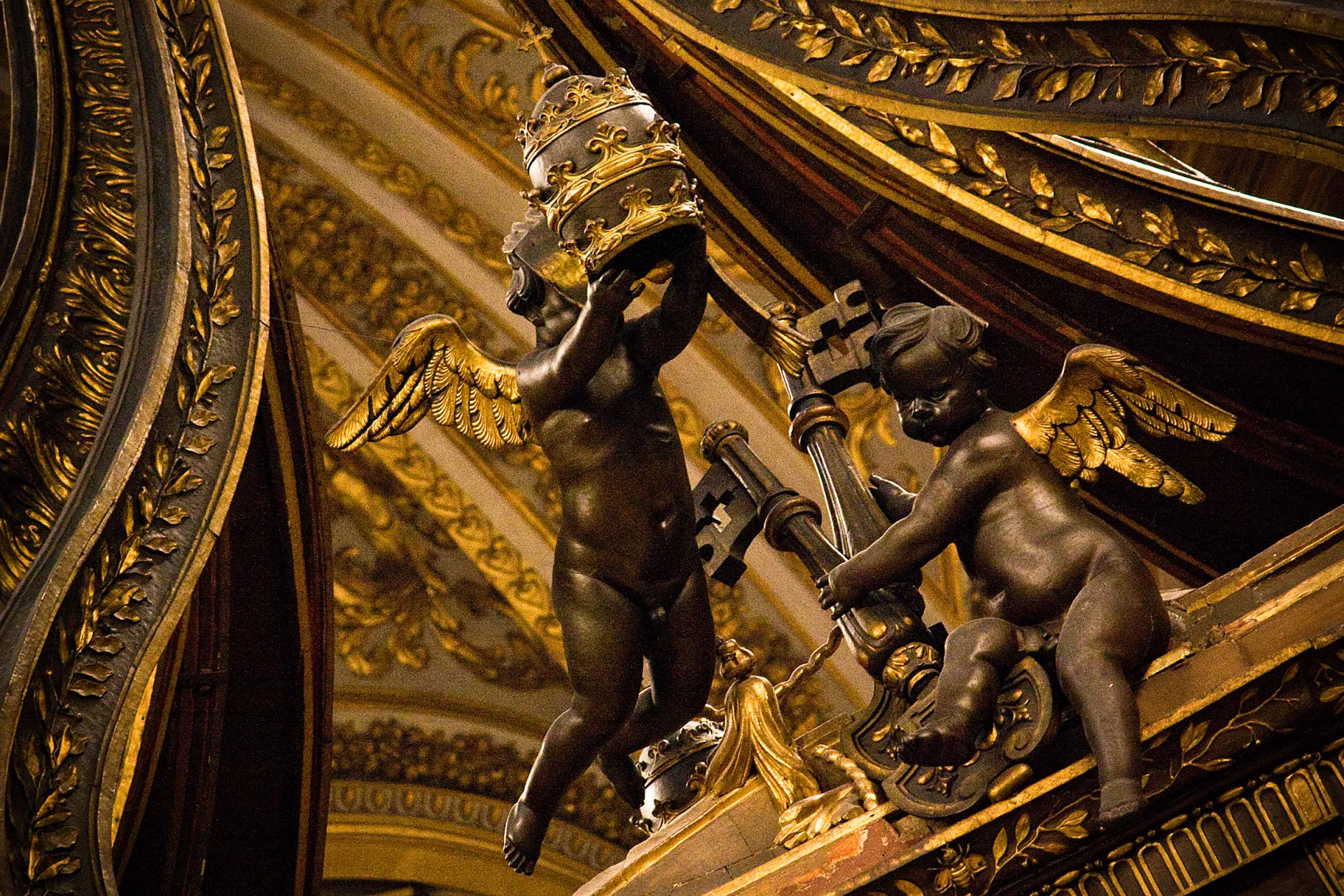 Junto al altar también obra maestra de Bernini, crean un centro majestuoso dentro la basílica y por encima de donde se encuentran los restos del primer papa, san Pedro.
