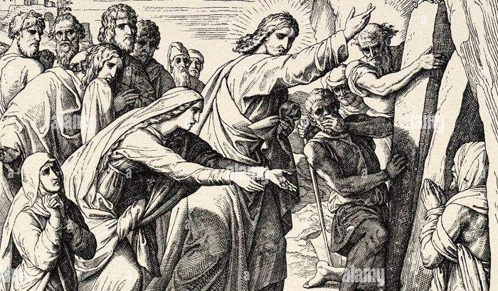 Lucas añade: «Yendo ellos de camino, entró en un pueblo; y una mujer, llamada Marta, le recibió en su casa. Tenía ella una hermana llamada María, que, sentada a los pies del Señor, escuchaba su Palabra, mientras Marta estaba atareada en muchos quehaceres. Acercándose, pues, dijo: «Señor, ¿no te importa que mi hermana me deje sola en el trabajo? Dile, pues, que me ayude.» -Lucas 10:38-40