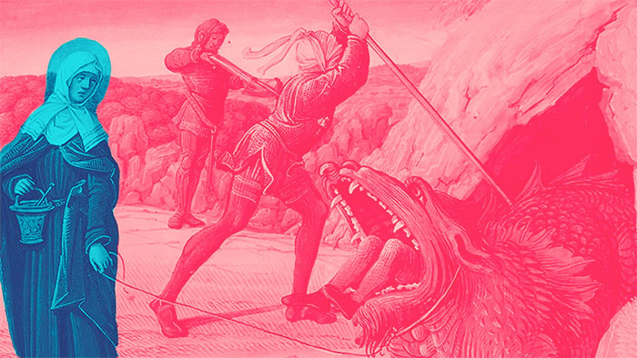 al dragón que tienes rendido a tus pies.