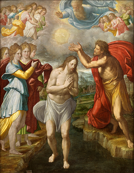 El acto de humildad de Jesús, es rubricado por el acontecimiento milagroso. El texto nos narra que el cielo se abrió y descendió sobre él, el Espíritu Santo en forma de paloma y se escuchó una voz que decía: Tú eres mi hijo el amado;en ti me complazco. Esta revelación marca lo que podríamos distinguir como una segunda Epifanía. En efecto, si la primera exaltaba la divinidad de Jesús ante los Reyes Magos que representan a todas las naciones de la tierra, ésta manifiesta la divinidad de Jesús ante el pueblo judío.