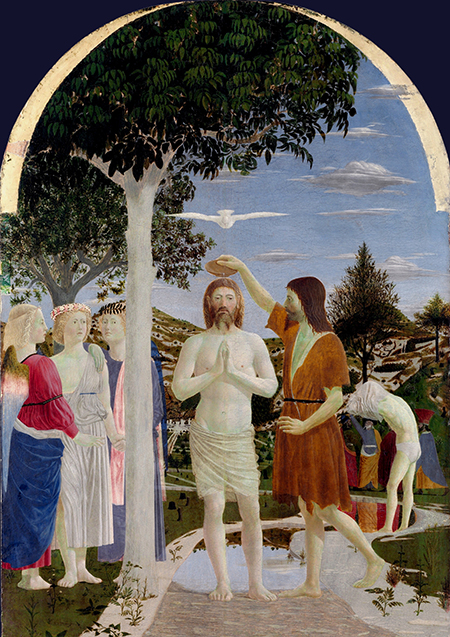 En el bautismo del Señor, cuando Jesús se allana aún más y se coloca como un pecador en la fila para recibir el bautismo otorgado por Juan, el Espíritu Santo en forma de paloma se posa sobre el redentor a la vez que los cielos proclaman: