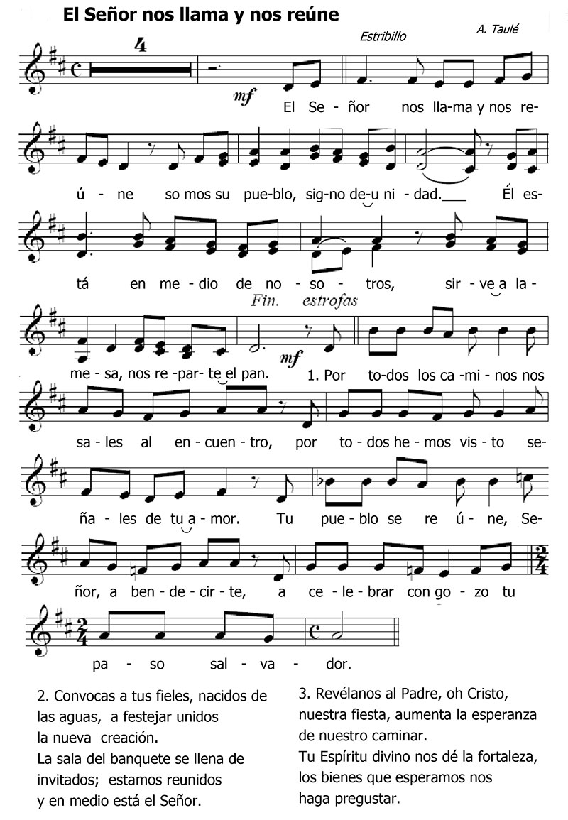 Hoy te invito a revisar este canto que lleva por título: El Señor nos llama y nos reúne, firmado por A. Taulé.