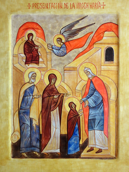 De esta manera cuenta el llamado «Protoevangelio de Santiago» (caps. 7-8) -un escrito cristiano del siglo II, perteneciente al grupo de los llamados «apócrifos»- la «presentación de María en el templo», tradición piadosa en la que se inspira la escena que conmemoramos hoy.