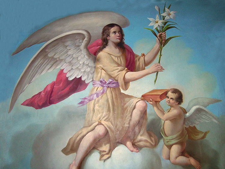 San Gabriel Arcángel, su nombre significa «Fortaleza de Dios». De Gabriel se puede decir que nunca ha habido ni habrá jamás otro Embajador investido de más hermosa misión. Fue él quien tuvo el encargo de anunciar el cumplimiento del más feliz acontecimiento en la historia del mundo, cuando llegó a anunciar a la Virgen María que iba a ser Madre del Salvador.