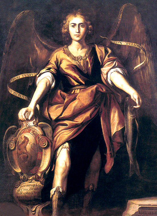 San Rafael Arcángel, cuyo nombre significa «Dios salva», no sólo es el ángel de la guarda del joven Tobías, sino que él mismo se presenta como uno de los siete «Ángeles especiales que llevan las oraciones de los justos al trono de Dios y se mueven en la presencia de la gloria del Santísimo» (Tob. 12,15). Es el buen acompañante del hijo de Tobías, a quien conduce, sabio, cariñoso y firme, por entre las asechanzas del mal, hasta un feliz matrimonio y la curación del propio Tobías de su ceguera. Desde la antigüedad la Iglesia ha invocado a San Rafael como patrono de los caminantes, y como intercesor en el camino de la vida.