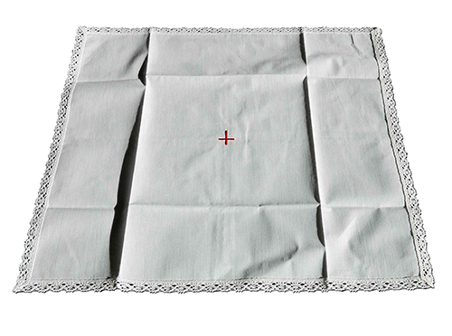 Pieza cuadrada de tela sobre la que descansa la Eucaristía. Sobre ella se pone la patena y el cáliz durante la Misa. Antiguamente la Sagrada Hostia descansaba directamente sobre el corporal desde el ofertorio hasta la fracción. También se pone debajo de la custodia durante la Exposición del Santísimo. No debe llevar bordado mas que una pequeña cruz. Para guardarlo debe doblarse en nueve cuadrados iguales.