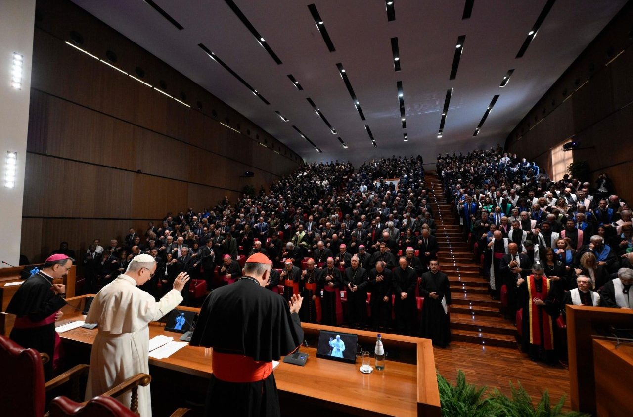 «Hoy tenemos una necesidad urgente de pensar la fe para poder aplicarla a los escenarios culturales y a los retos actuales, pero también para contrarrestar el riesgo del vacío cultural que, en nuestra época, se vuelve cada vez más omnipresente. En particular, la Facultad de Teología está llamada a reflexionar sobre el depósito de la fe y a hacer emerger su belleza y credibilidad en los diferentes contextos contemporáneos, para que aparezca como una propuesta plenamente humana, capaz de transformar la vida de las personas y de la sociedad, de desencadenar cambios proféticos con respecto a los dramas y las pobrezas de nuestro tiempo y de alentar la búsqueda de Dios».