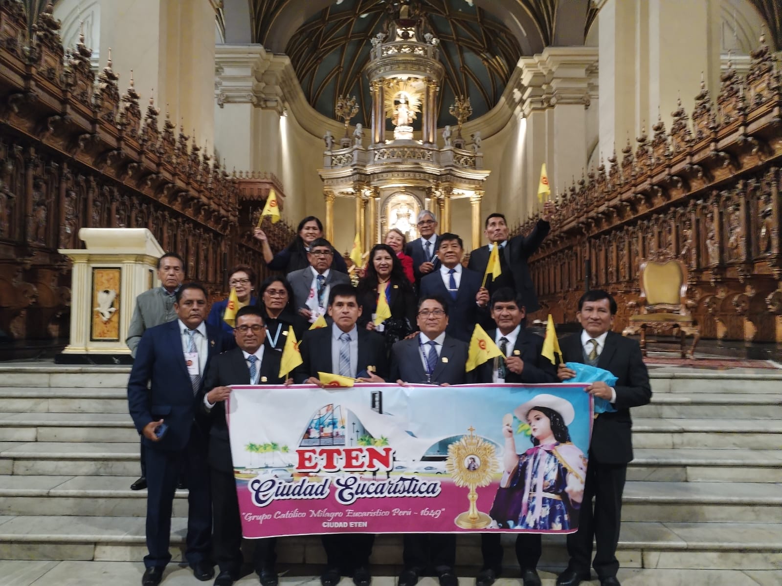 Este domingo, la Catedral de Lima recibió la visita del Grupo Católico «Milagro Eucarístico Perú 1649», al celebrarse el aniversario 375 de la primera aparición del Niño Jesús en la Hostia Consagrada en Ciudad Eten (Chiclayo).