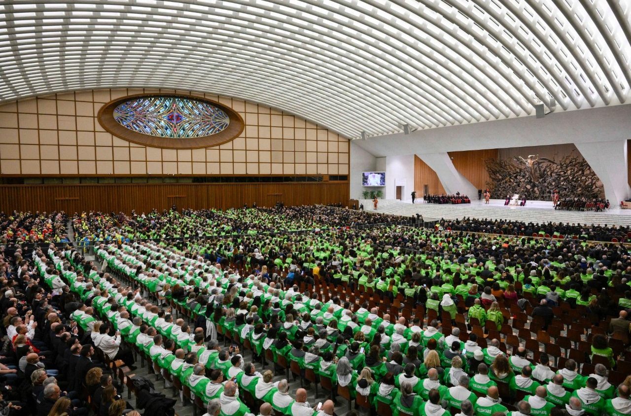 Un Aula Pablo VI coloreada del verde esperanza de los voluntarios