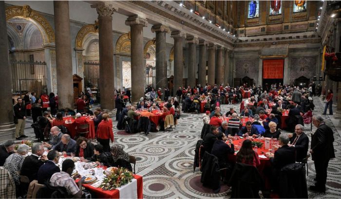 Mesas decoradas para las fiestas, sonrisas, abrazos, regalos personalizados y la serenidad de quienes se sienten como en casa. Entre los invitados al almuerzo se encontraban algunos rescatados de la tragedia humanitaria en Gaza. Durante casi dos horas, conversaron y celebraron con el menú tradicional: lasaña, pastel de carne, lentejas y panettone. Fue en 1982 cuando se puso por primera vez la mesa festiva en la Basílica de Santa María en Trastevere, y desde entonces, esa misma mesa se ha expandido para llegar a diferentes partes del mundo.