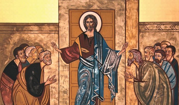 Al anochecer de aquel día, el primero de la semana, estaban los discípulos en una casa, con las puertas cerradas por miedo a los judíos. Y en esto entró Jesús, se puso en medio y les dijo: