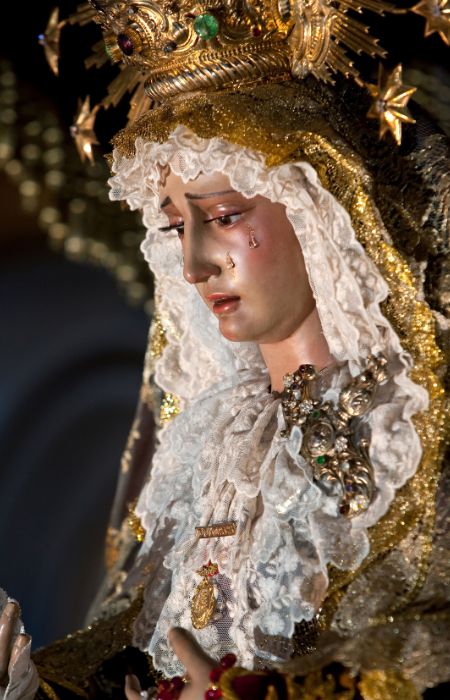 La imagen de la Virgen Dolorosa nos enseña a tener fortaleza ante los sufrimientos de la vida. Encontremos en Ella una compañía y una fuerza para dar sentido a los propios sufri-mientos.