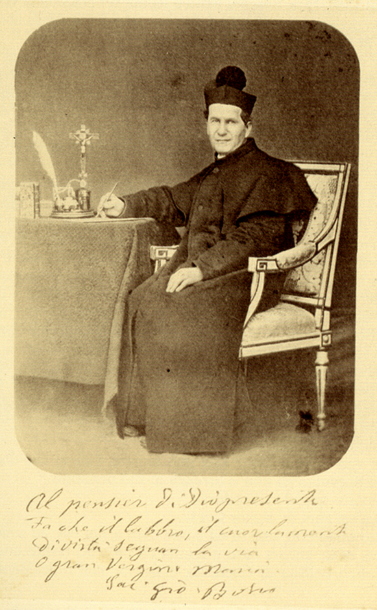 Nació el 16 de agosto de 1815 en Becchi (Italia), de padres humildes pero muy buenos cristianos. Desde pequeño pierde a su padre, de su madre recibió una profunda educación cristiana y un gran amor a la Virgen María junto con un gran respeto hacia los Sacerdotes. Ambas cosas quedaron profundamente impresas en su alma. Siempre luchó por un ideal, trabajando desde niño, ayudando a su madre a labrar la tierra, sirviendo de mozo y por las noches estudiaba el Catecismo.