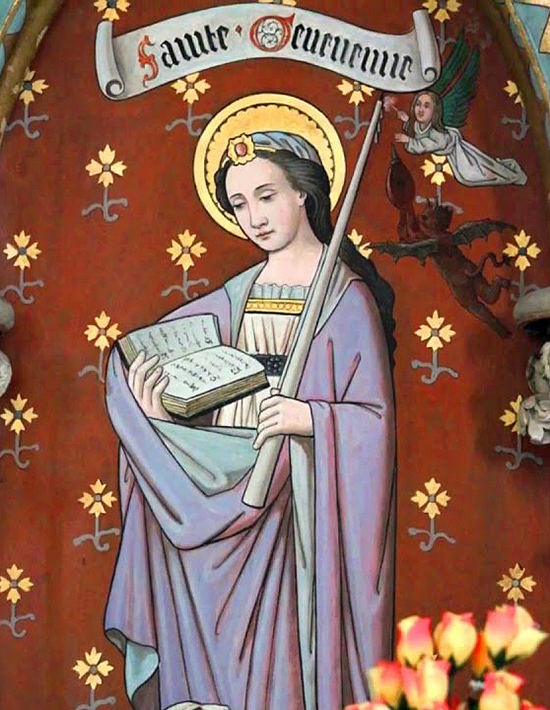 El rey Clovis mandó edificar una iglesia en honor de San Pedro y San Pablo y la montaña se llamará ya, en adelante, la montaña de Santa Genoveva. Fue enterrada junto al rey merovingio y lo que queda de sus cenizas, después de la acción que corresponde en propiedad a las hordas de cretinos de la Revolución, se encuentra en la Iglesia de Saint-Etienne-du-Mont.